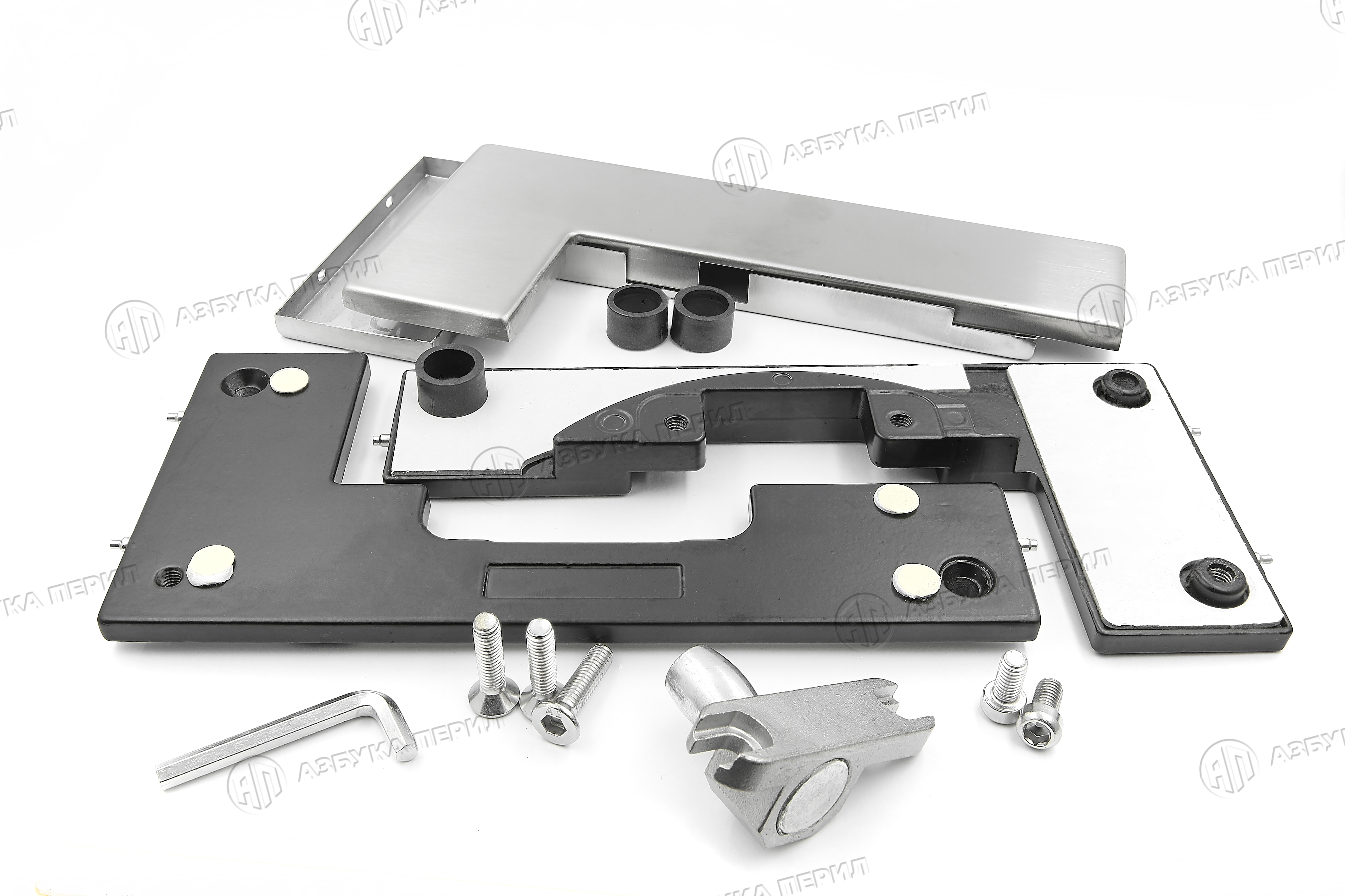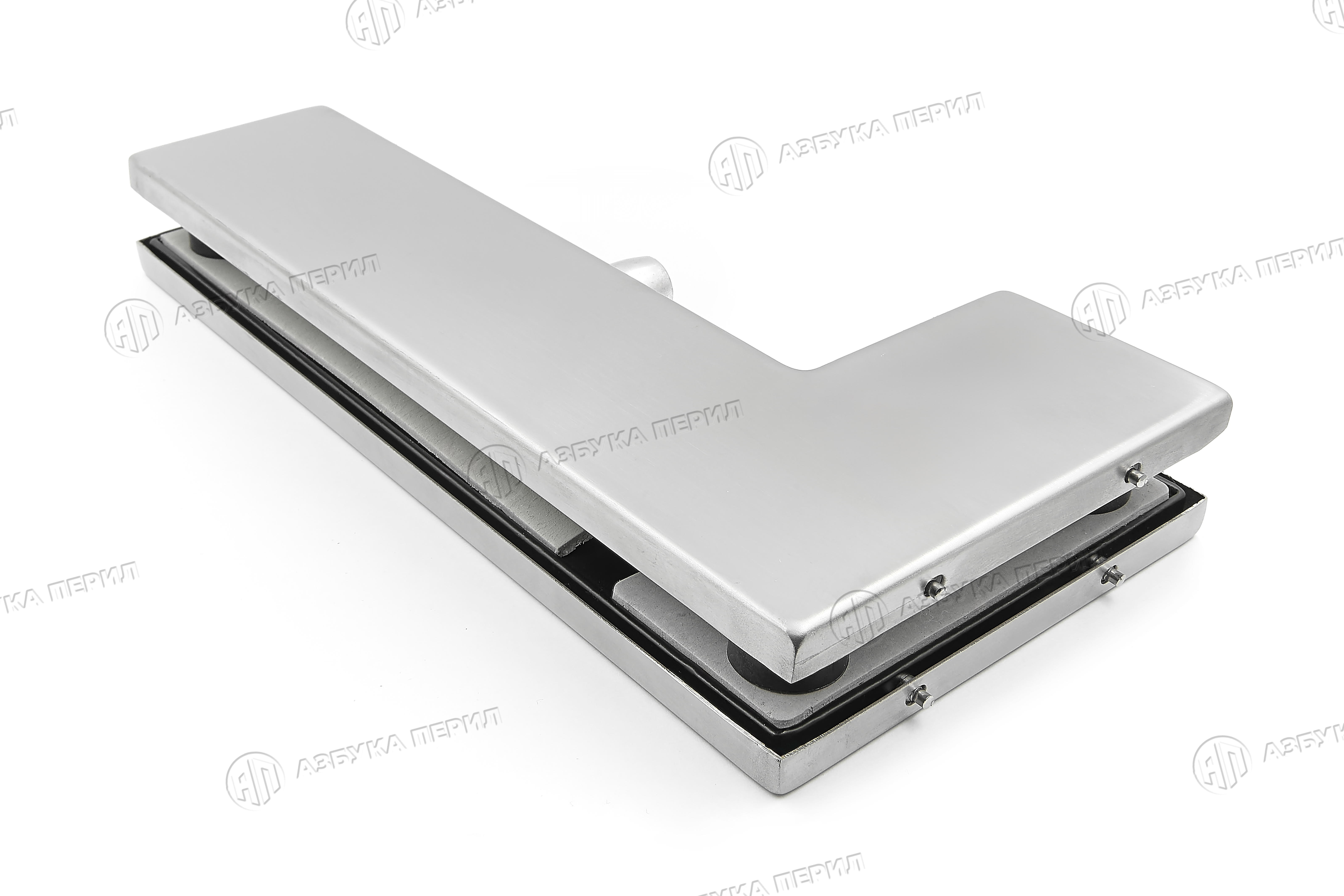 Фитинг угловой на фрамугу с осью, для стекла 10-12 мм, нерж. сталь матовая, SSS