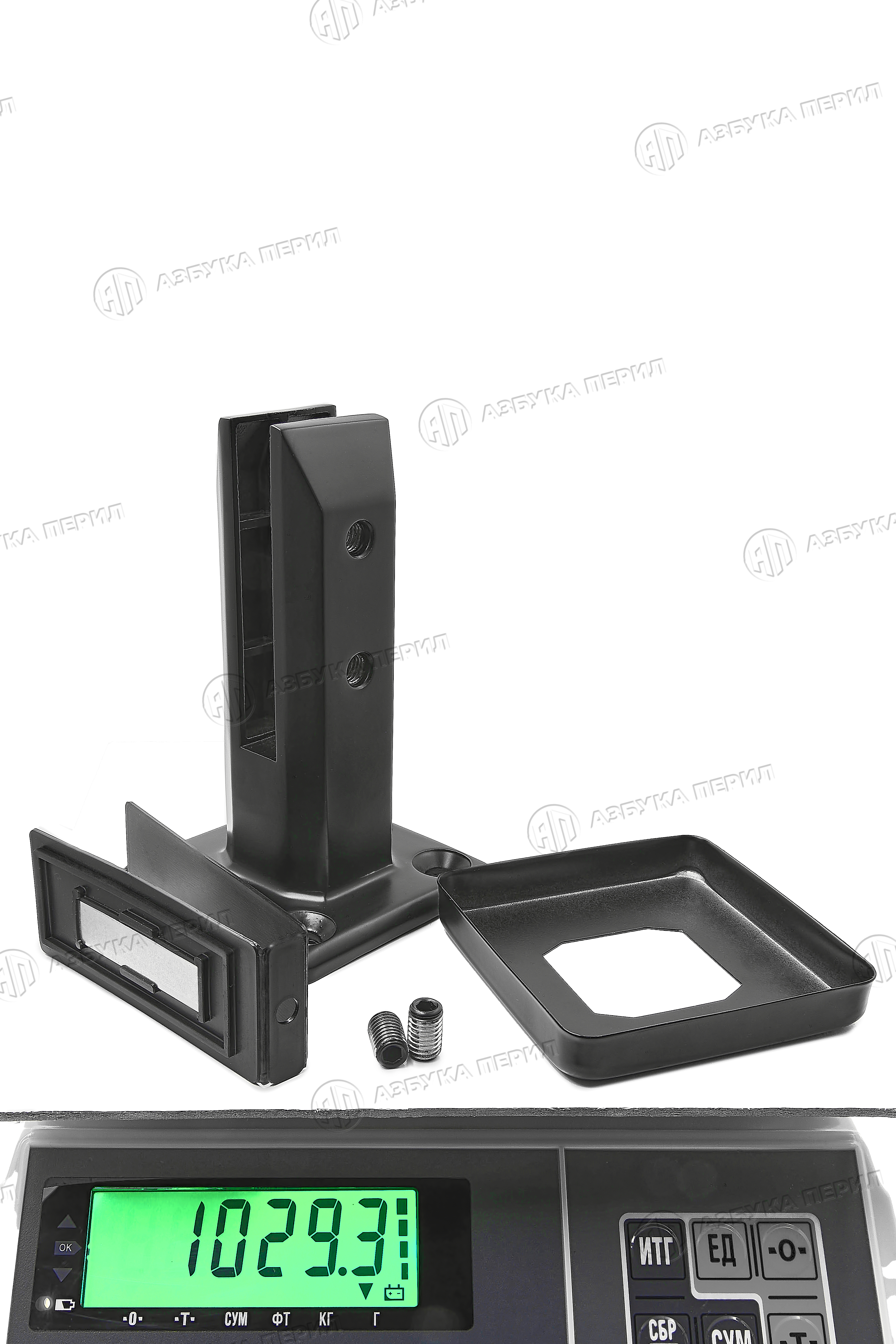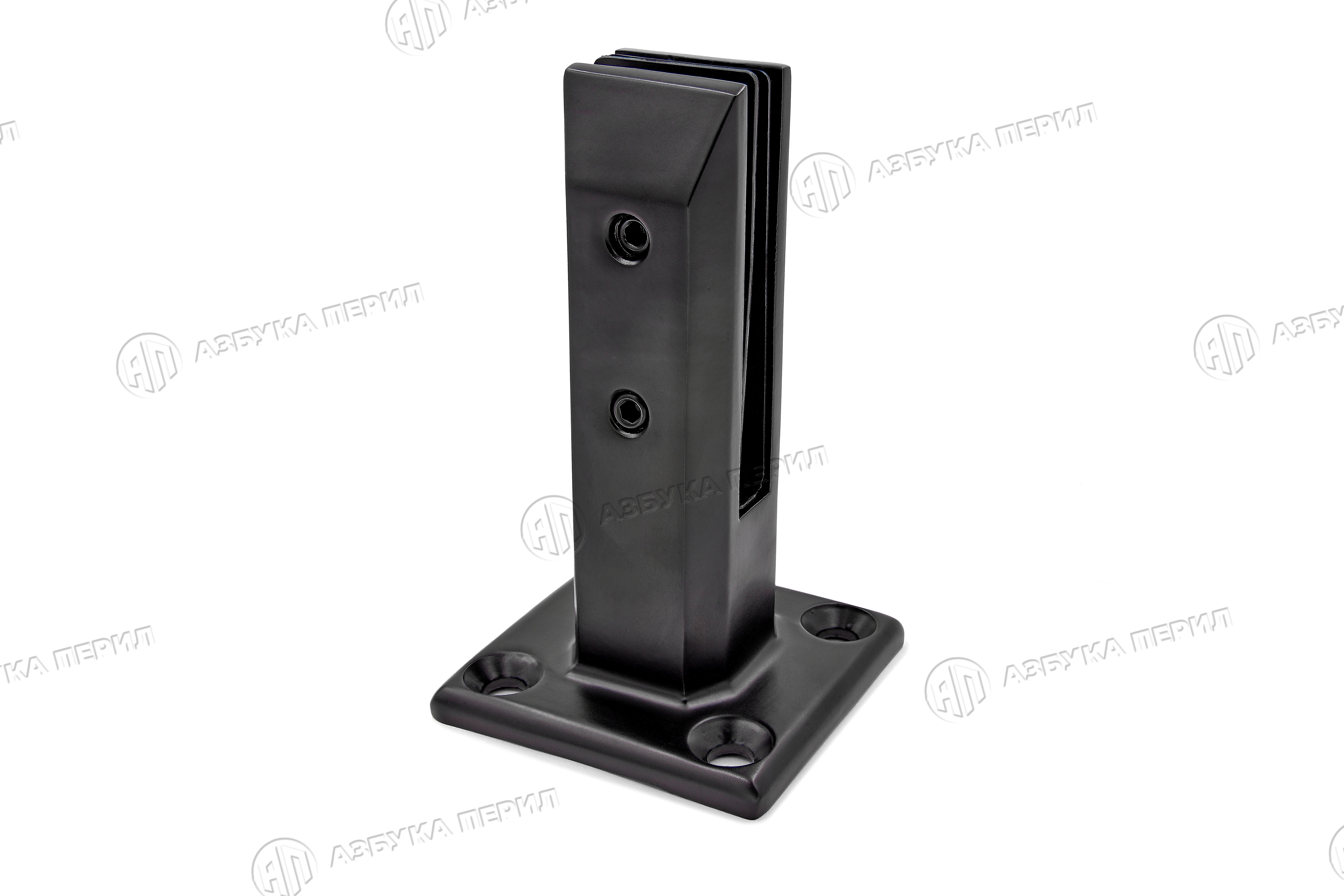 Напольный стеклодержатель литой, квадратный Ø45х50х160мм, БЕЗ СВЕРЛЕНИЯ, 10-12мм, AISI 304, ЧЕРНЫЙ