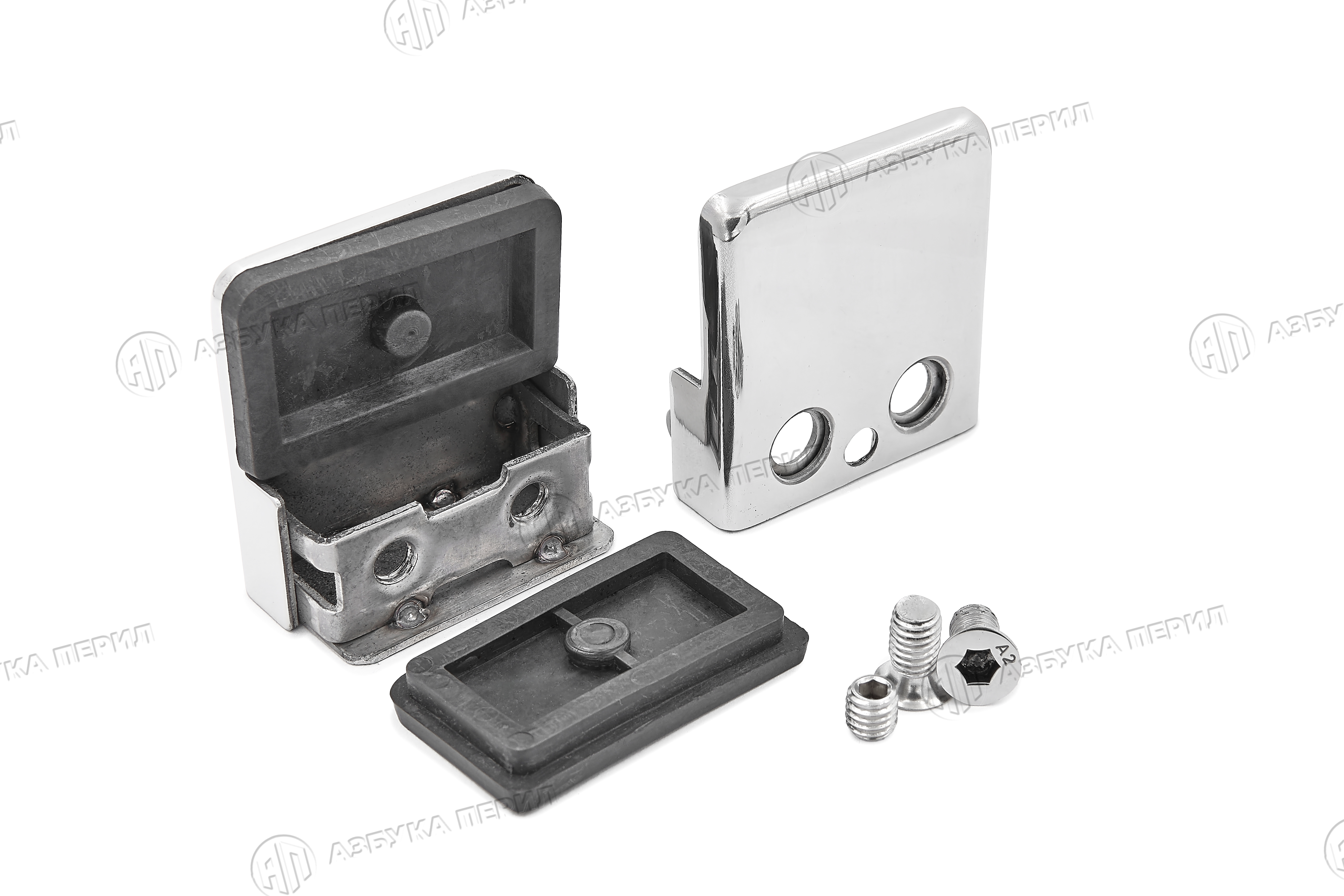 Квадратный стеклодержатель, штамп, на плоскость, 44х24х45, под стекло 8мм, AISI 304, ЗЕРКАЛО